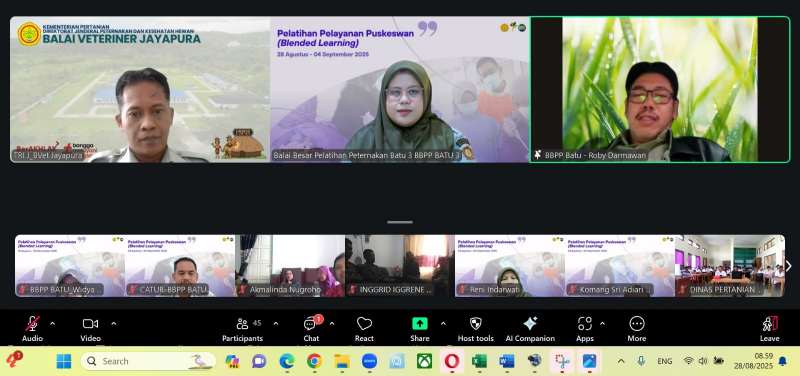 BATU – Balai Besar Pelatihan Peternakan (BBPP) Batu menggelar Pelatihan Pelayanan Pusat Kesehatan Hewan (Puskeswan) secara blended learning yang diikuti oleh 49 petugas kesehatan hewan, terdiri dari 35 peserta dari Kabupaten Keerom dan 14 peserta dari Kabupaten Merauke. Kegiatan pelatihan sebanyak 2 angkatan ini berlangsung selama 5 hari yang di mulai pada 28 Agustus 2025 hingga 4 September 2025.