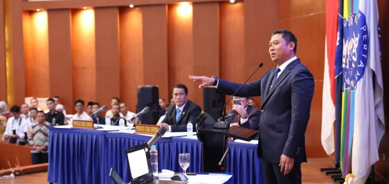 Dalam sidang tersebut, Wamentan Sudaryono atau akrab disapa Mas Dar mempertahankan disertasi berjudul “Evaluasi dan Strategi Optimisasi Kinerja BUMN Pasca Kebijakan Holdingisasi di Indonesia”.