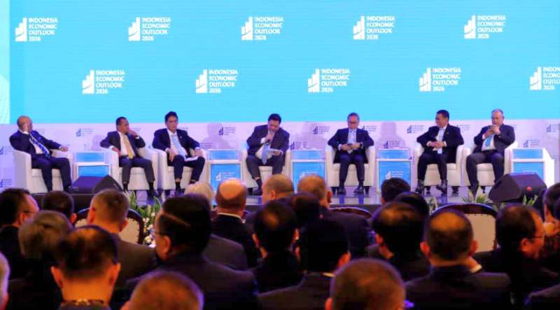 Jakarta – Menteri Pertanian (Mentan) Andi Amran Sulaiman memaparkan strategi swasembada pangan sebagai fondasi stabilitas ekonomi nasional di hadapan pelaku usaha dan ekonom dalam Indonesia Economic Outlook 2026, Jumat (13/2), di Wisma Danantara Indonesia, Jakarta.